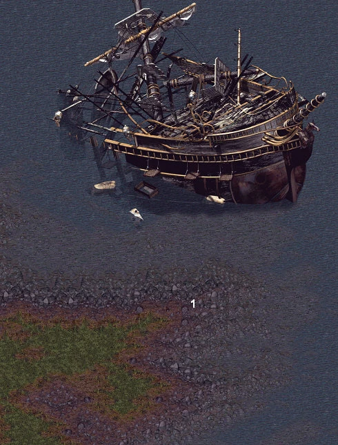 The Shipwreck is notable for being abandoned during the day, and haunted by several Greater Skeletons at night.